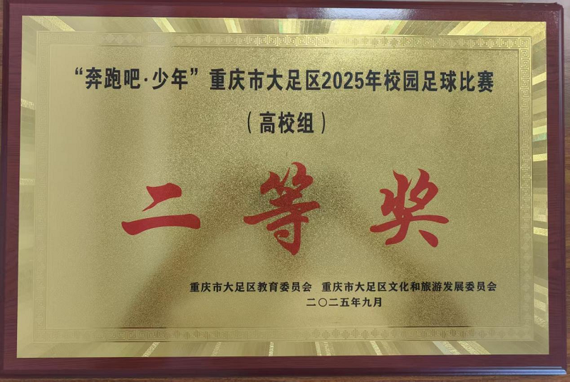 近日,由重庆市大足区教育委员会、重庆市大足区文化和旅游发展委员会举办的“奔跑吧·少年”重庆市大足区2025年校园足球联赛落下帷幕,我校参赛队喜获高校组二等奖。